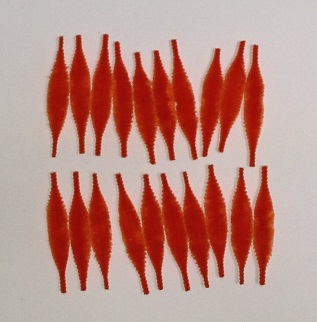 ③オレンジのひょうたんモール5本を1ぴょうずつ切り分ける。